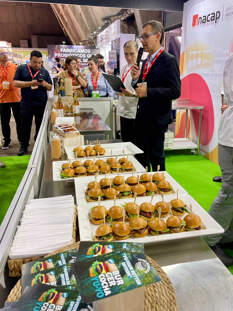 Además de su presencia en el stand institucional de CeTA, la participación central y más masiva de Yu-Yo Burger se realizó en la activación organizada junto a Transforma Alimentos y los chefs del Centro de Innovación Gastronómica de Inacap, donde se presentaron y degustaron distintas preparaciones elaboradas con el producto, sorprendiendo al público por su sabor, textura y versatilidad.
