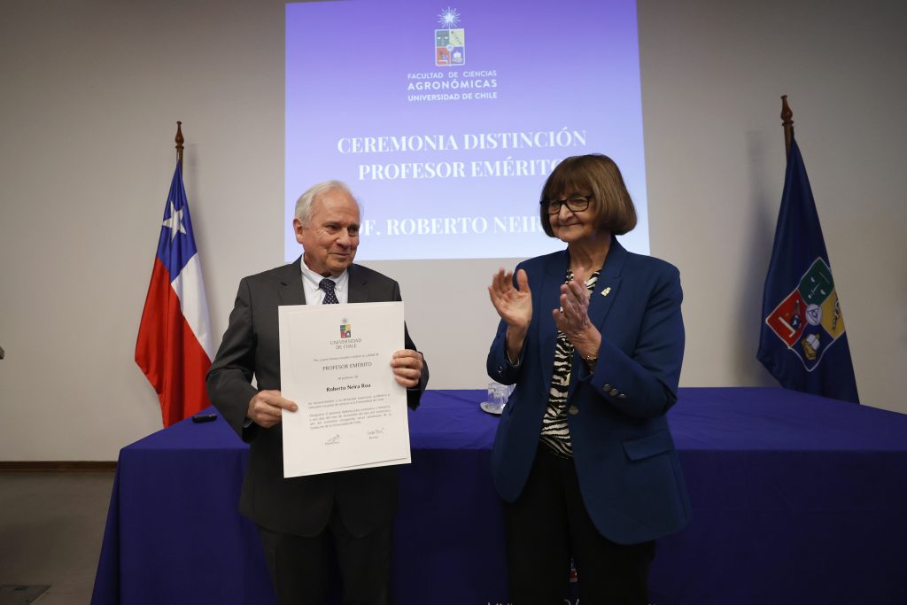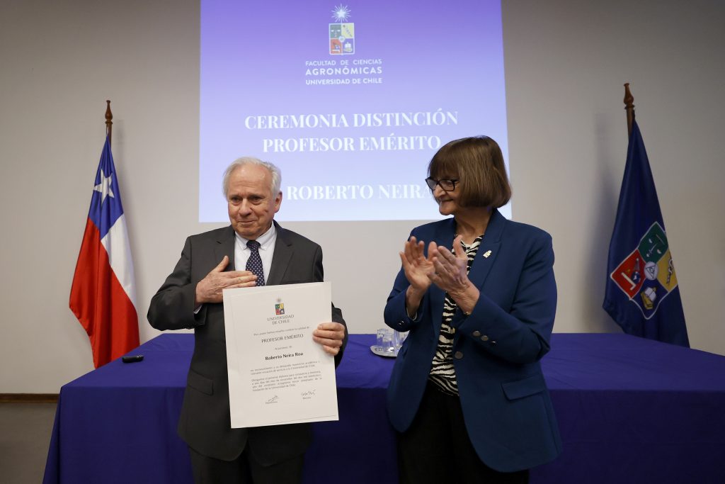 El jueves 6 de noviembre, el profesor Roberto Neira Roa, Presidente del Directorio del Centro Tecnológico para la Innovación Alimentaria (CeTA), recibió la distinción de Profesor Emérito de la Universidad de Chile, en una ceremonia realizada en la Facultad de Ciencias Agronómicas.